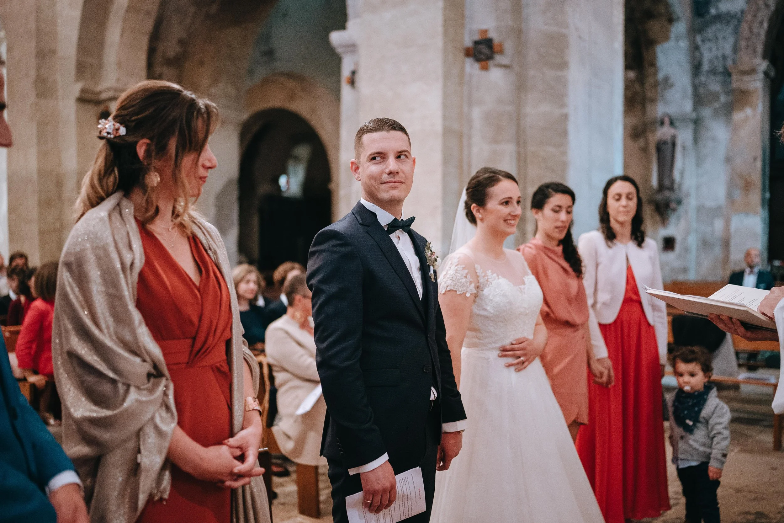 Des préparatifs dans la bonne humeur et la rigolade, un magnifique first look, quelques photos en extérieur en évitant les averses, une belle cérémonie religieuse, une sortie joyeuse sous la pluie battante et la lavande, un cocktail dans une salle magnifique, une soirée pleine d’émotions et de danses endiablées.